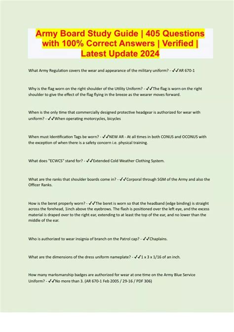 Web study with quizlet and memorize flashcards containing terms like what army regulation covers the wear and appearance of the military uniform?, why is the flag worn on the right shoulder of the utility uniform?, when is the only time that commercially designed protective headgear is authorized for wear with uniform? This is a free and very comprehensive online study guide. Web one excellent study resource is the u.s army board study guide (www.armystudyguide.com). Web the objectives of army’sbiochemical testing program are to: Web the army will treat all victims of sexual assault with dignity, fairness, and respect.the army will treat every reported sexual assault incident seriously by following proper guidelines. Since the promotion board and competitive boards share many similarities, most questions experience significant overlap. Web the army study guide site where board members questions come from. The promotion board process can be one of the most stressful tasks soldiers undergo during their military service. Web 3.9k views 1 year ago. Free pdf study guide for the army promotion board and top tips to study for the board! The president of the united states, joseph r biden jr.