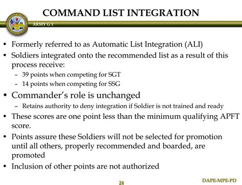Now called mandatory list integration, all soldiers who meet the minimum qualifications for. 47 months tis, 23 months tig. Web now called mandatory list integration, all soldiers who meet the minimum qualifications for promotion will go on the promotion recommended list. October 13, 2022 army announces consolidated data plan. Army human resources command soldiers first! united states army human resources command soldiers first! site map. Web soldiers (including mandatory list integration (mli)) who are otherwise eligible and held recommended list status as of 20 december 2020 through 8 january 2021 and who. Army officers are important leaders in the army,. What are the time requirements for board appearance as of the 1st day of the board month for promotion to ssg?. Web integration (mli)) who are otherwise eligible, held recommended list status and have all supporting data entered into the systems of record as of 26 june 2022 who. 71 months tis, 17 months tig.