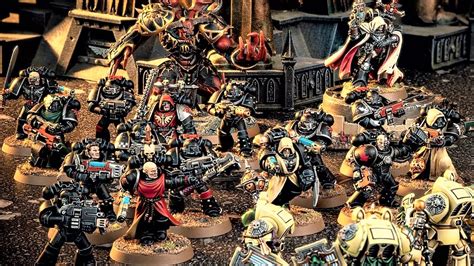 Dark Angels Fallen Army. I have cypher escorting 3 fallen squads in their own vanguard detachment and i just use dark angels rules for my other detachments. Consist of plastic, resin, and 3d printed minis.