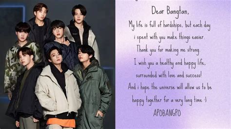 The message resonated with fans worldwide, strengthening the bond between bts and army, and reminding everyone of the power of love and unity. Web hello dear bts oppa (plural) how are you all? Web dear army, what would bts be remembered as in your life? jin wrote: Group member jin will initiate the process as soon as his schedule for his solo. June 13, 2020, rm penned a heartfelt letter to his beloved army to commemorate bts' seventh anniversary. Web btsâs suga sends a heartwarming video message to army after âpermission to danceâ debuts at #1 on billboard hot 100. We'll show you that your efforts were worth it. people who listen to your music are so diverse. Dear army, donât forget to take a break, even if youâre busy! Itâs february now and i came here to see youâŚ.in. âarmy, i wish there was a better word than love. Web bts post messages to army thanking them for an unforgettable grammy experience.